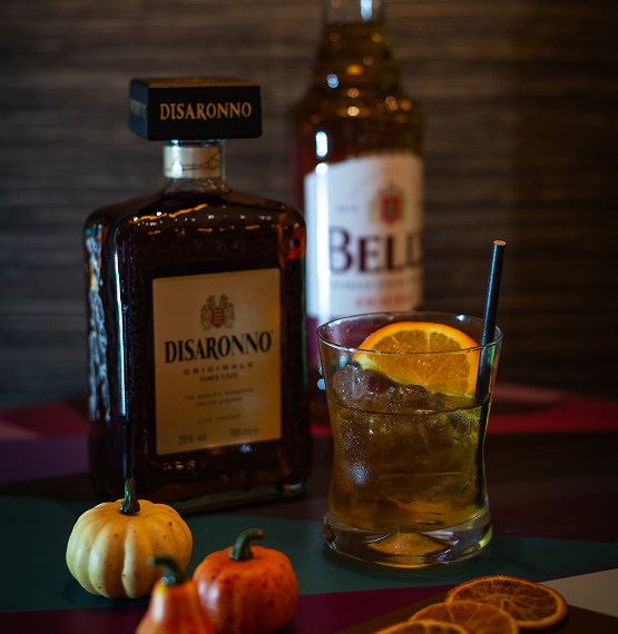 mix. Scotch whisky and Italian amaretto liqueur,